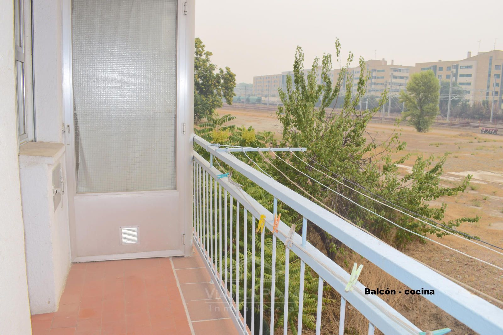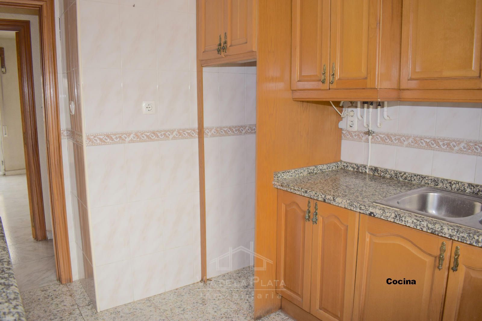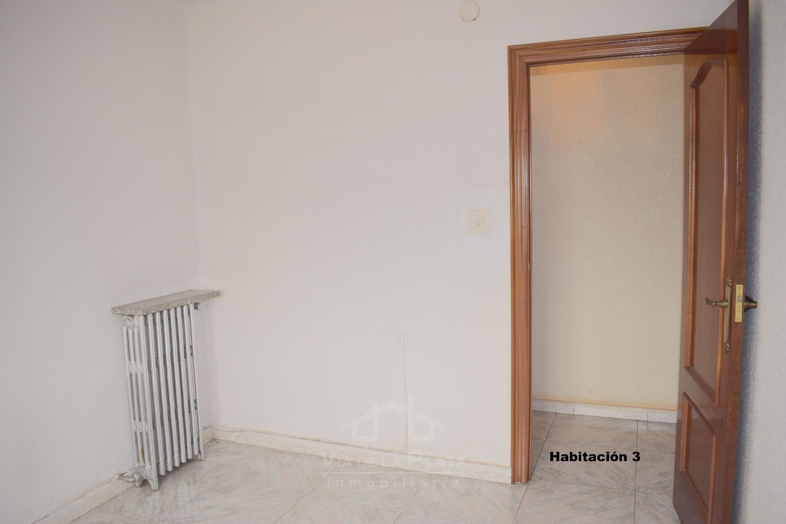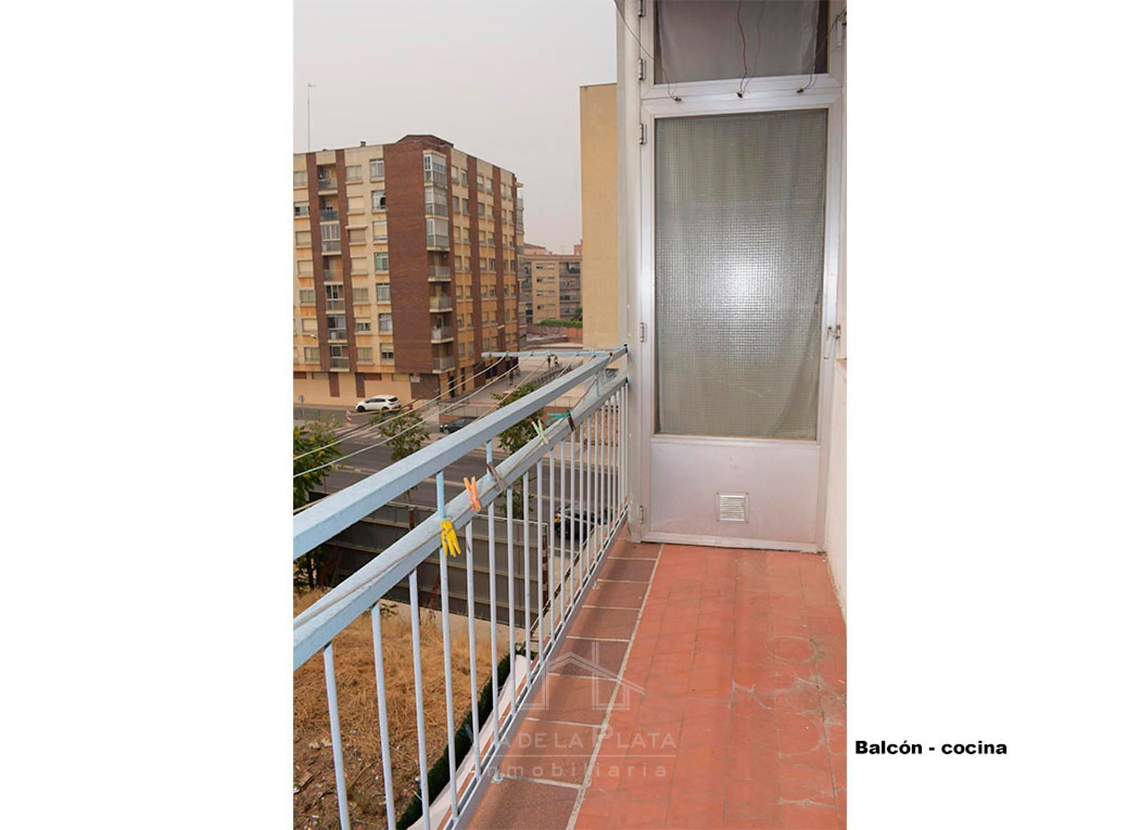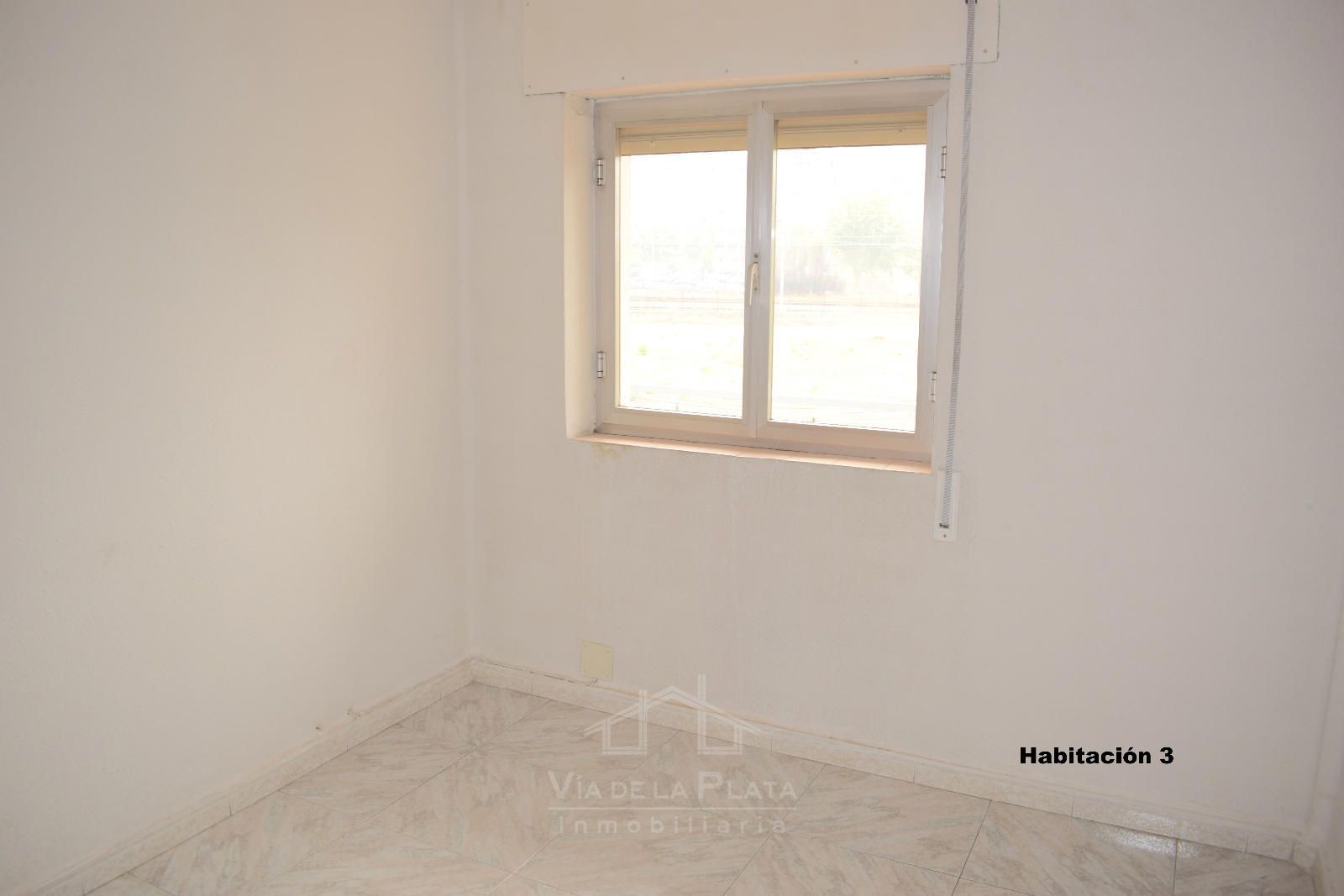 La vivienda se distribuye a través de un recibidor que conecta con un pasillo central del que nacen todas las estancias. El primer espacio es un dormitorio doble (actualmente usado como sala de estar). Justo enfrente se encuentra la cocina, con orientación este y salida a un balcón exterior con vistas a las vías del tren. En los terrenos de enfrente está proyectada la construcción de un parking público, lo que mejorará aún más la comodidad de la zona.