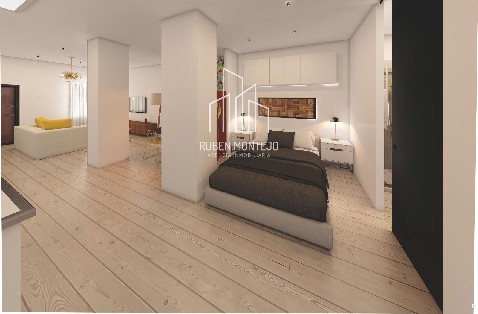 - Amplio espacio diáfano de salón-cocina-dormitorio de 34 m², moderno, luminoso y funcional
