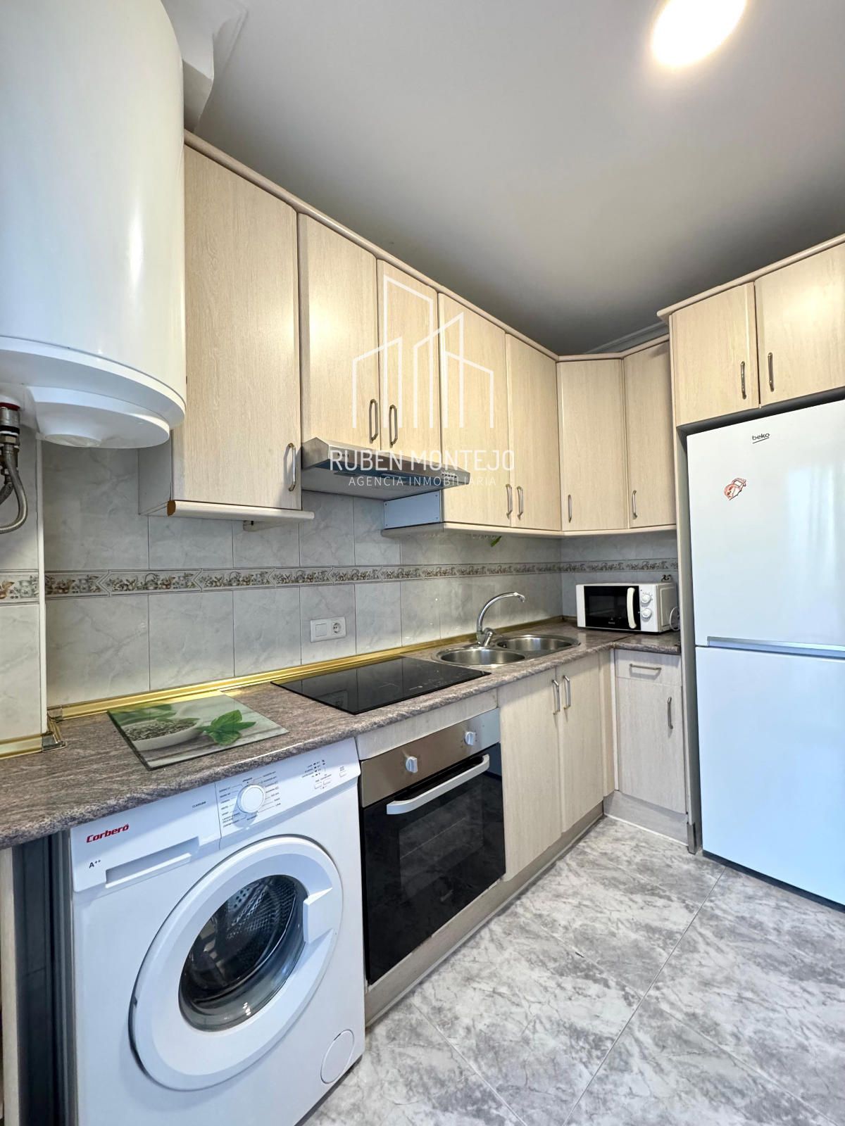 - Cocina amueblada y equipada con electrodomésticos.