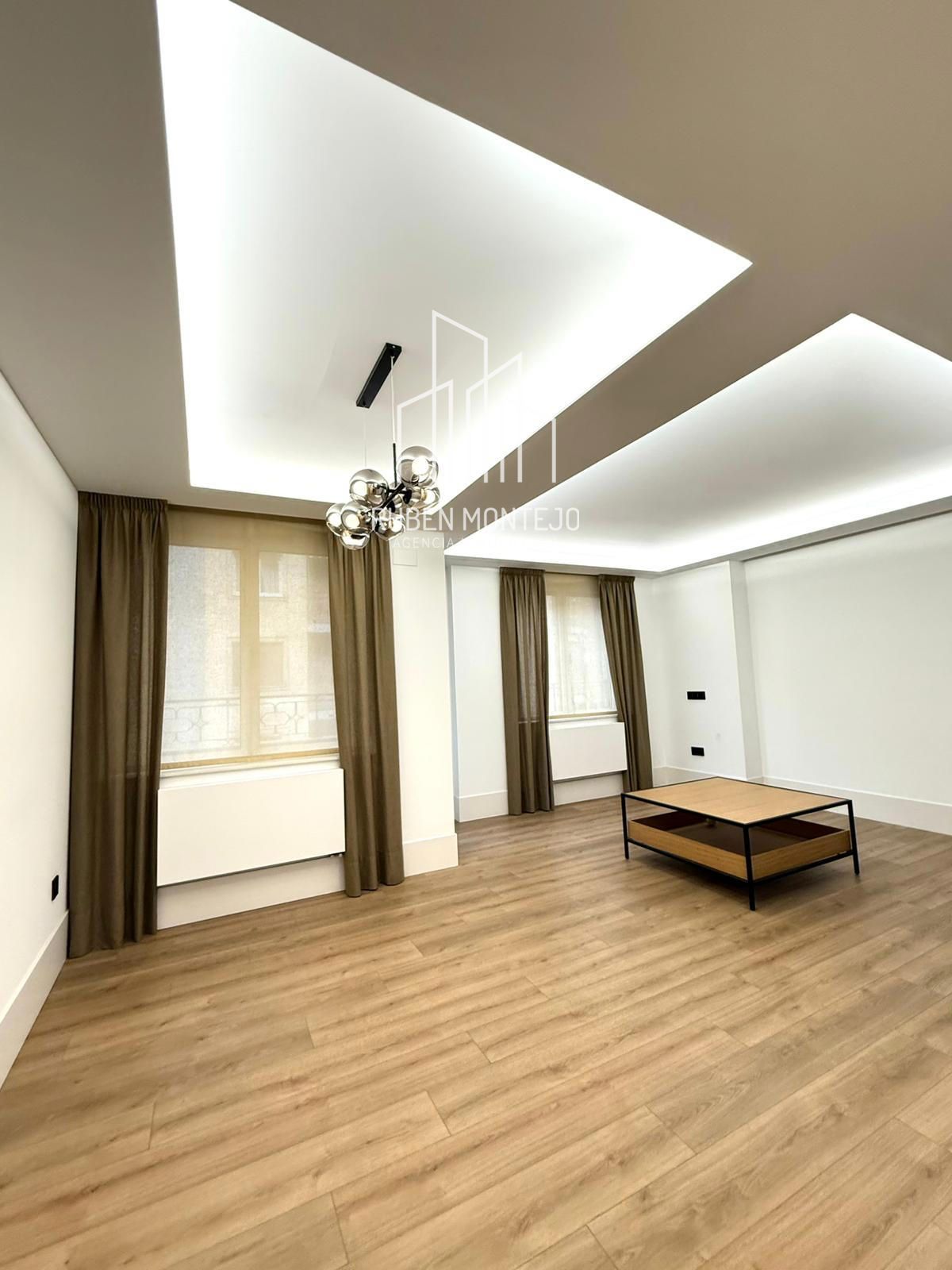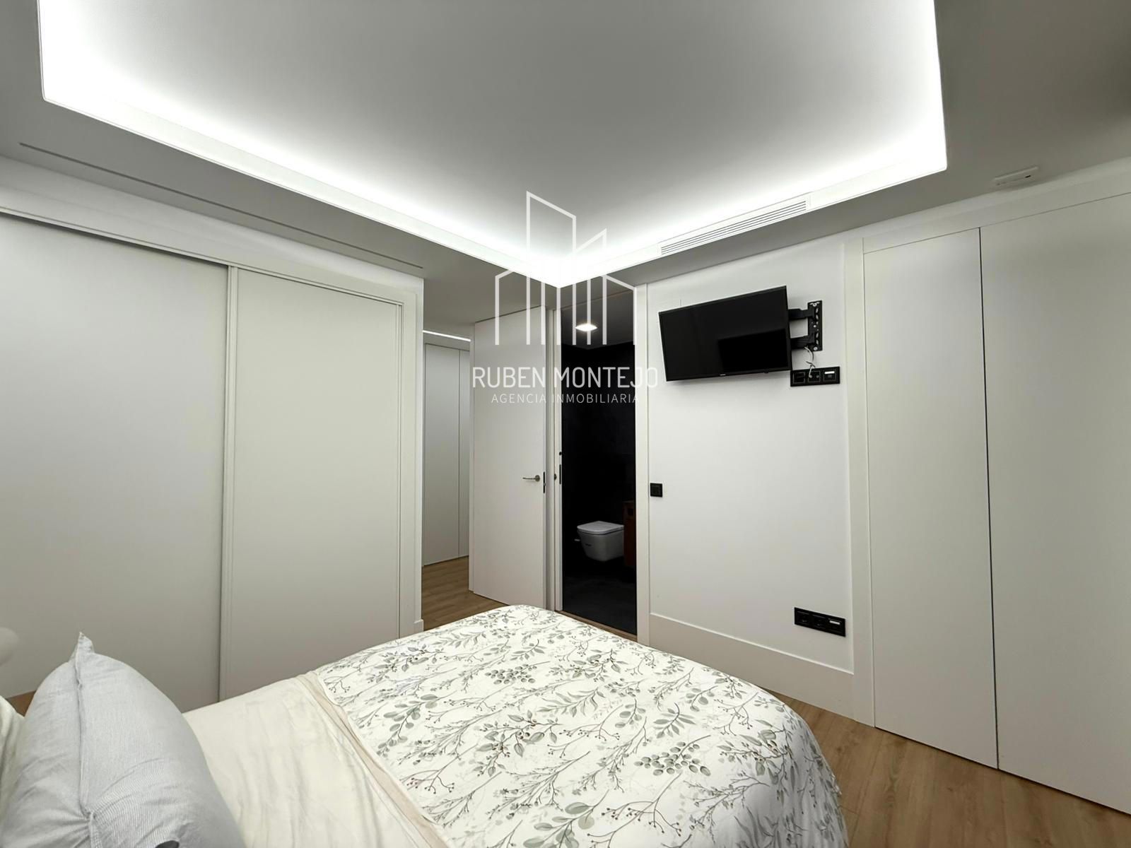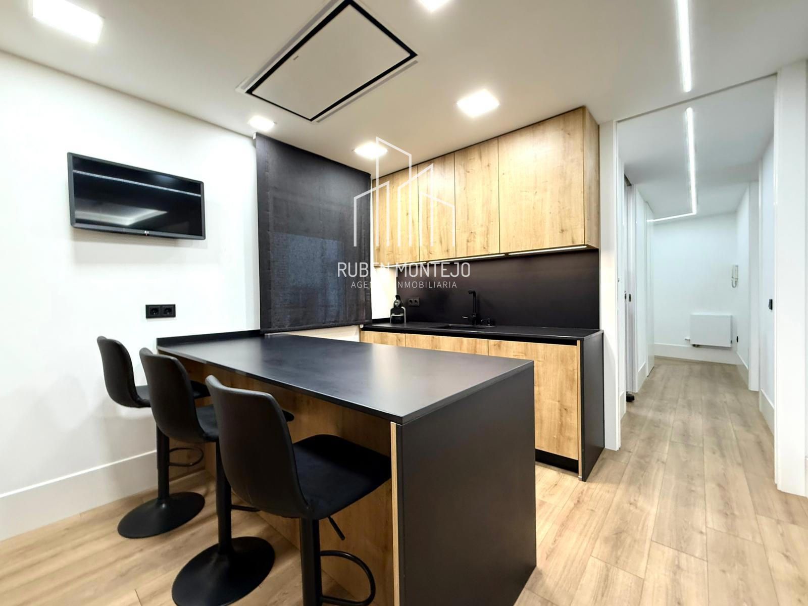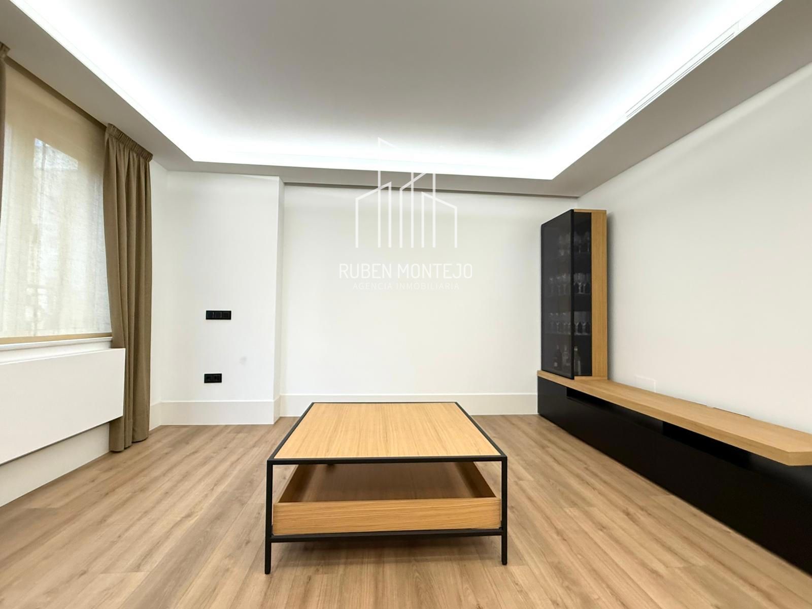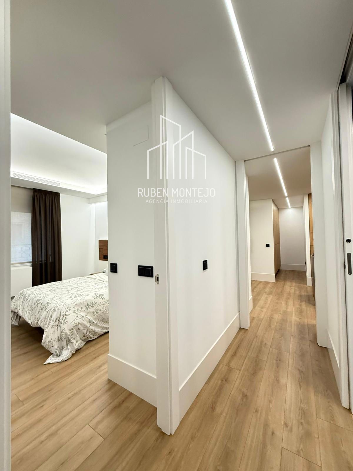 - Amplio salón con salida a balcón, con techos foseados con led indirecto, que cuenta con una puerta corredera de vidrio para poder aislar completamente de la cocina. Esta puerta al dejarla abierta queda totalmente oculta entre tabiques.