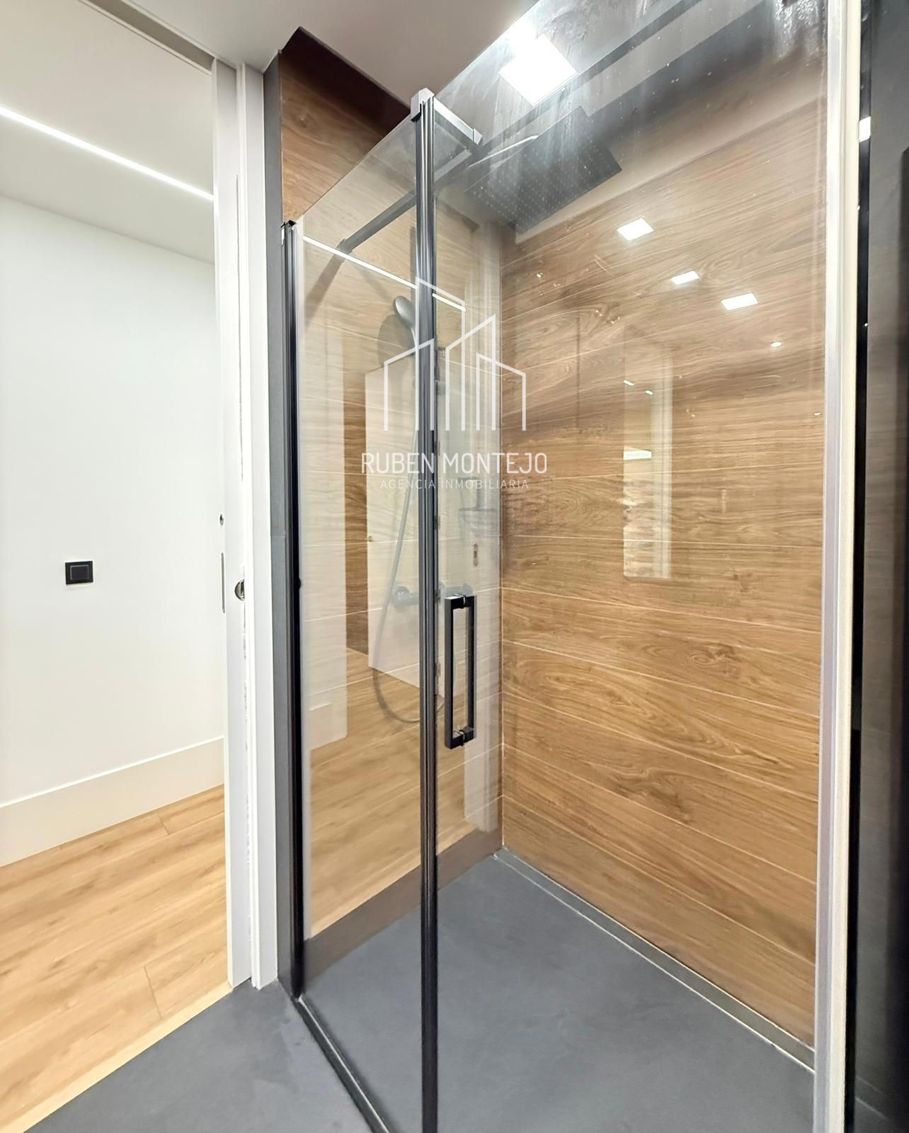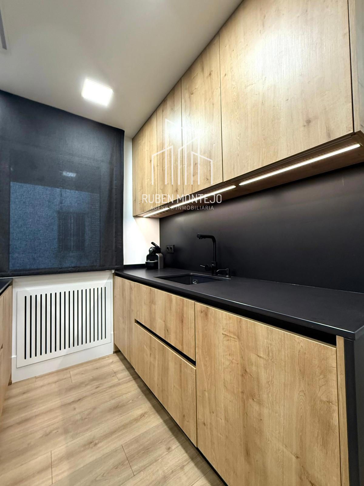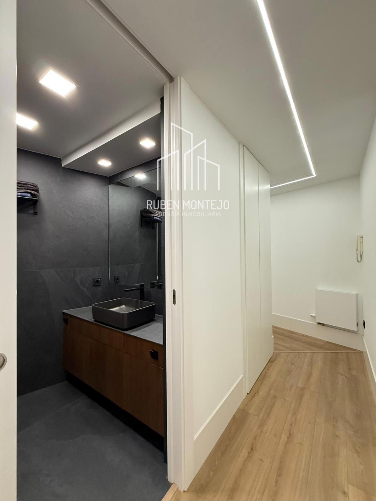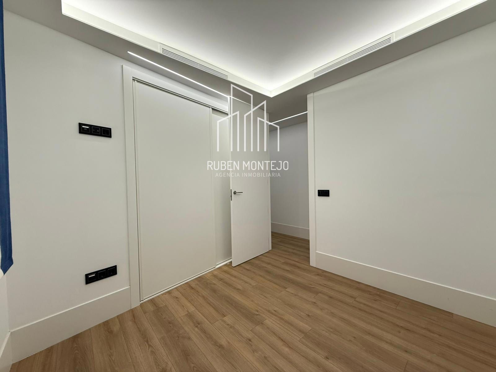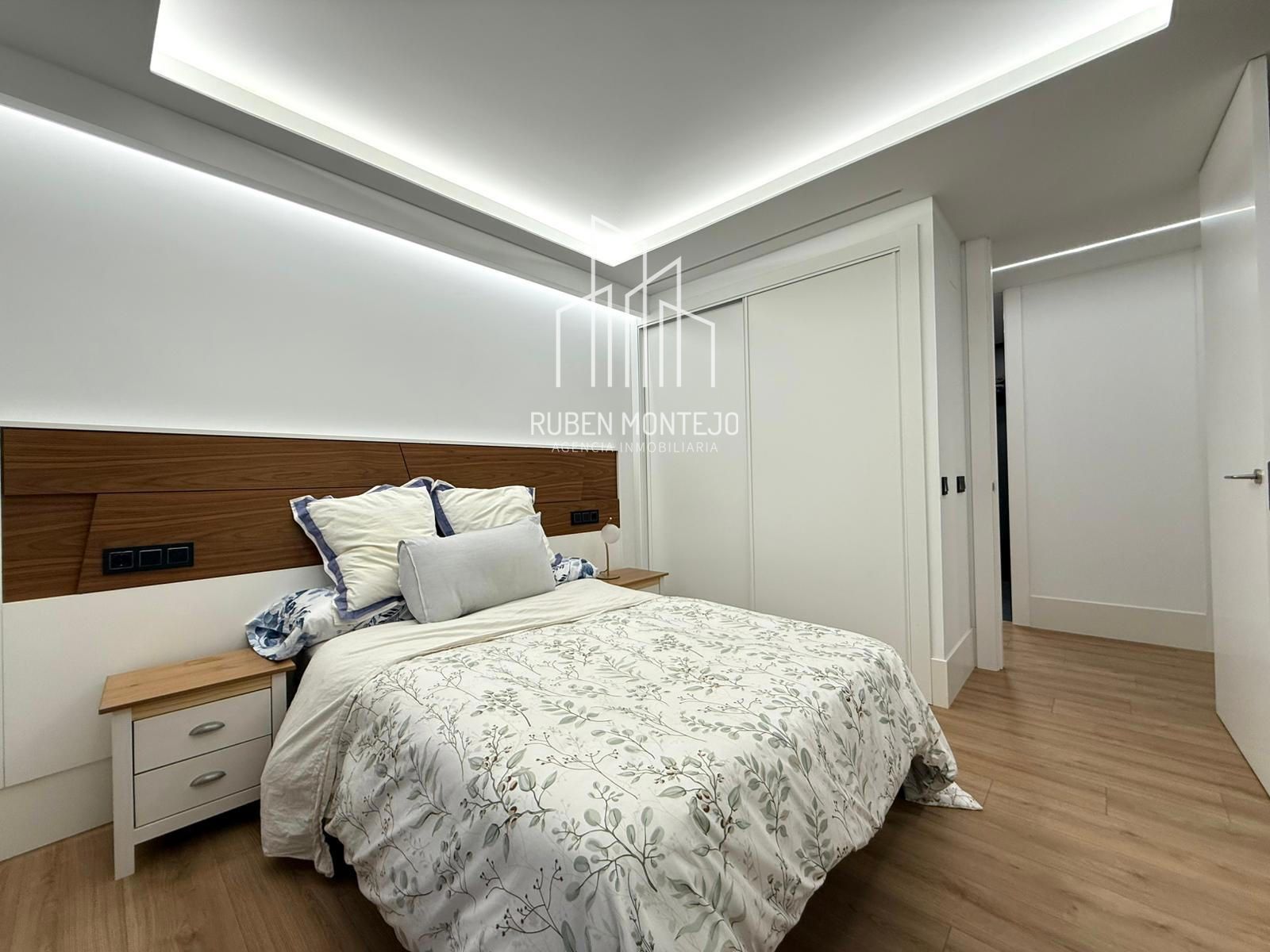 - Amplio salón con salida a balcón, con techos foseados con led indirecto, que cuenta con una puerta corredera de vidrio para poder aislar completamente de la cocina. Esta puerta al dejarla abierta queda totalmente oculta entre tabiques.