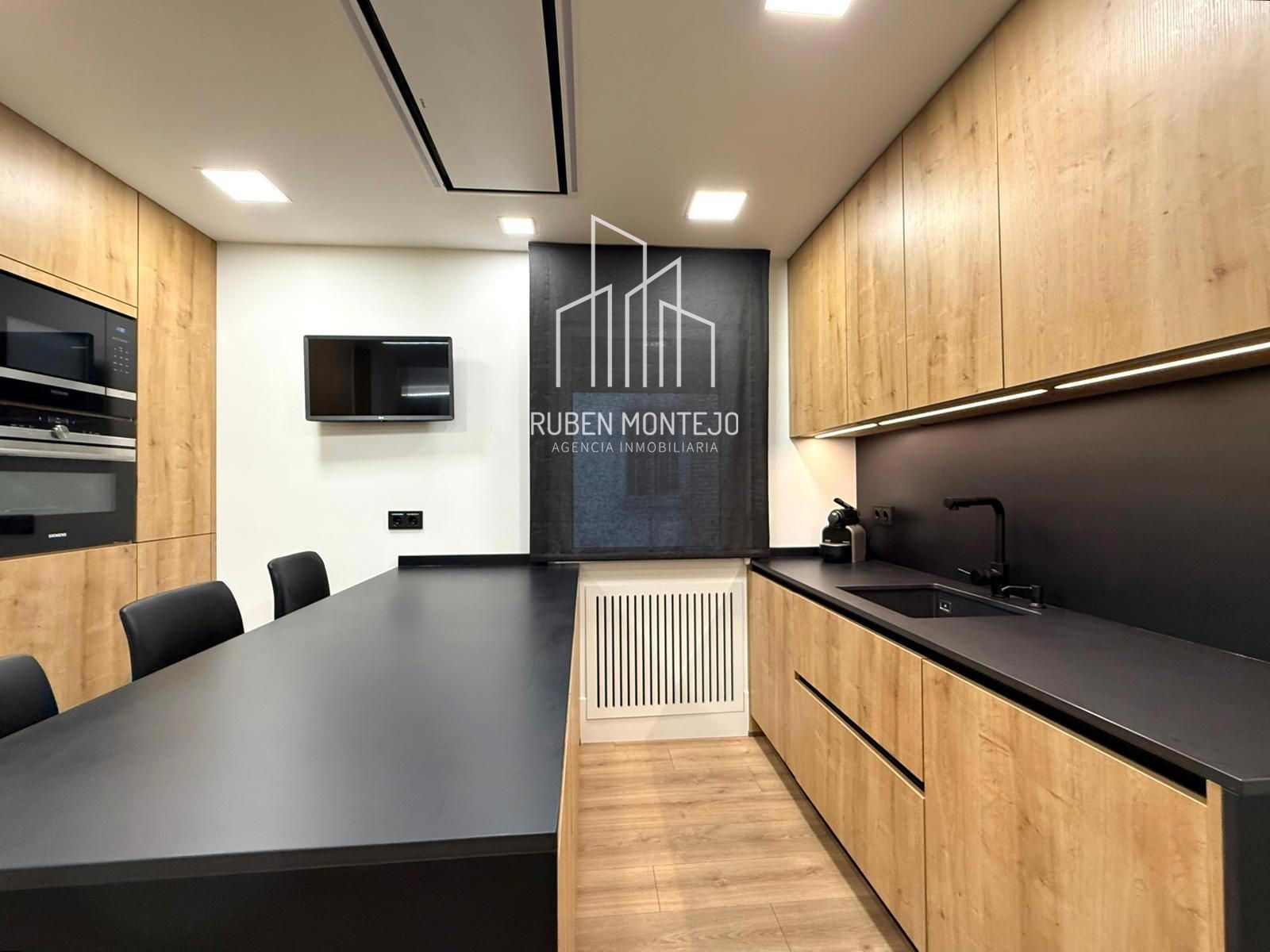 - Cocina totalmente amueblada y equipada con todos los electrodomésticos en gama alta de Siemens, cuenta con península central con Cooktop integrado, frigorífico de techo a suelo y congelador independiente, horno, microondas, lavadora y lavavajillas. Además, está provista de una gran capacidad de almacenaje.