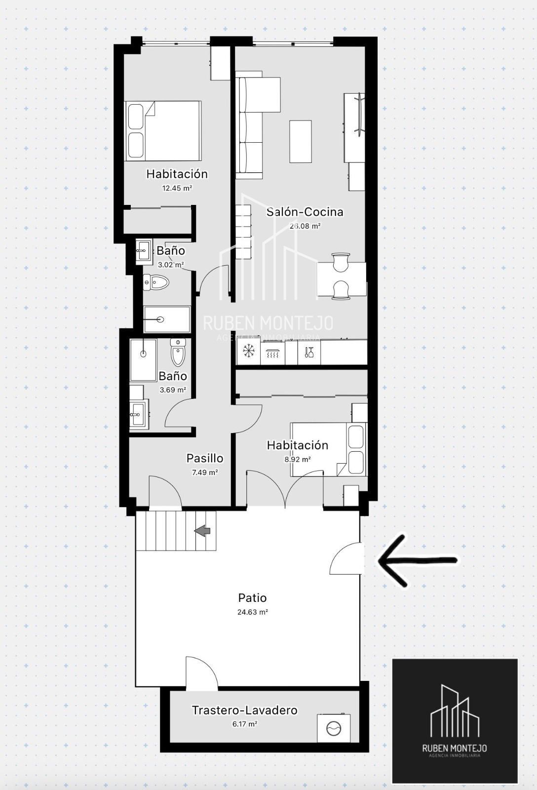 Cuenta con patio privado de uso exclusivo, un espacio exterior muy valorado, en el que se sitúa un práctico trastero-lavadero y desde el que se accede directamente a la vivienda, creando una transición funcional y reservada.