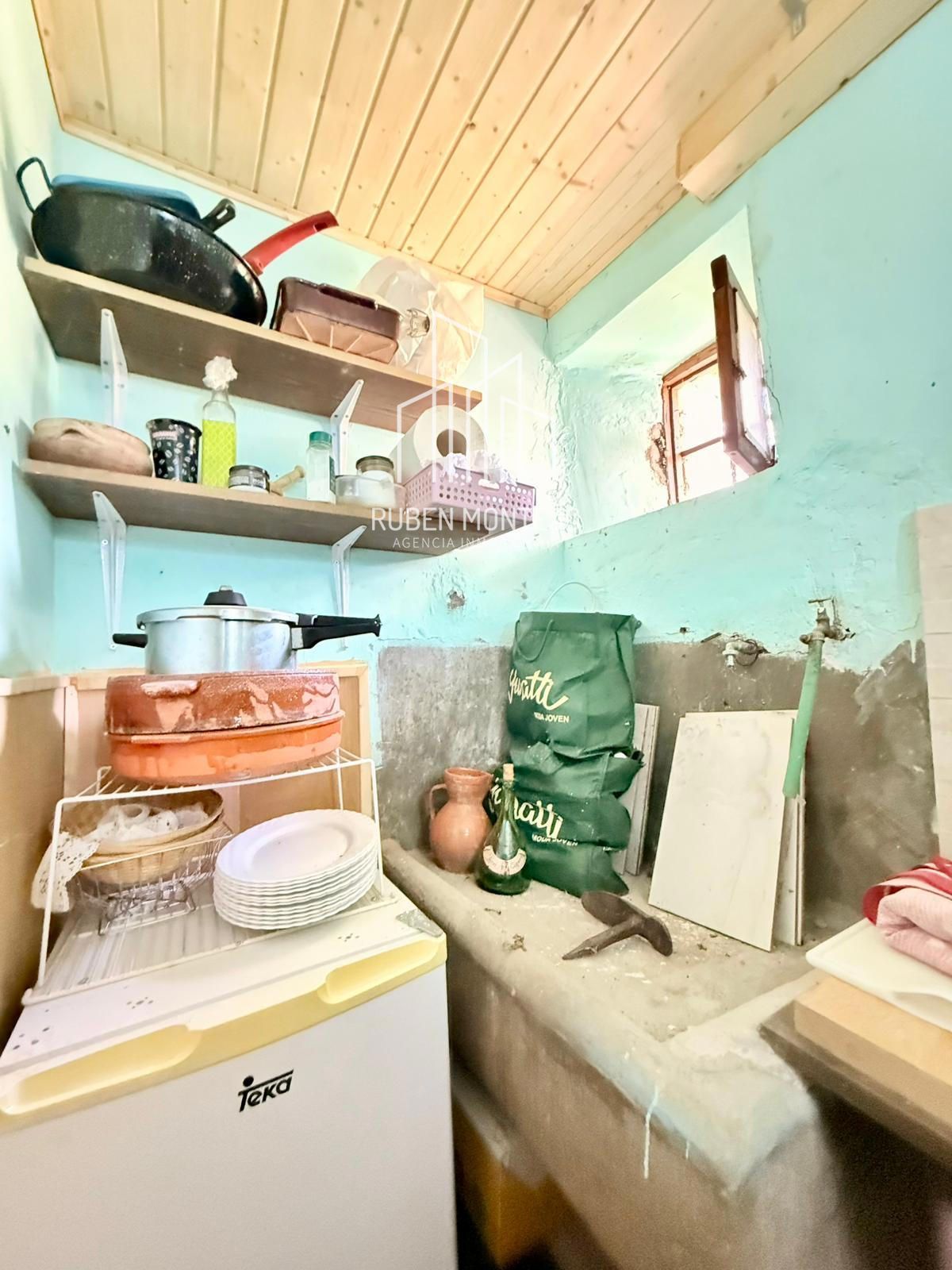 - Cocina con una pequeña ventana.
