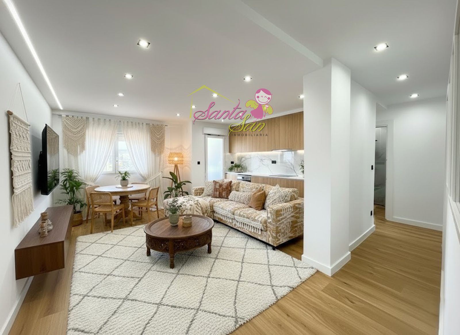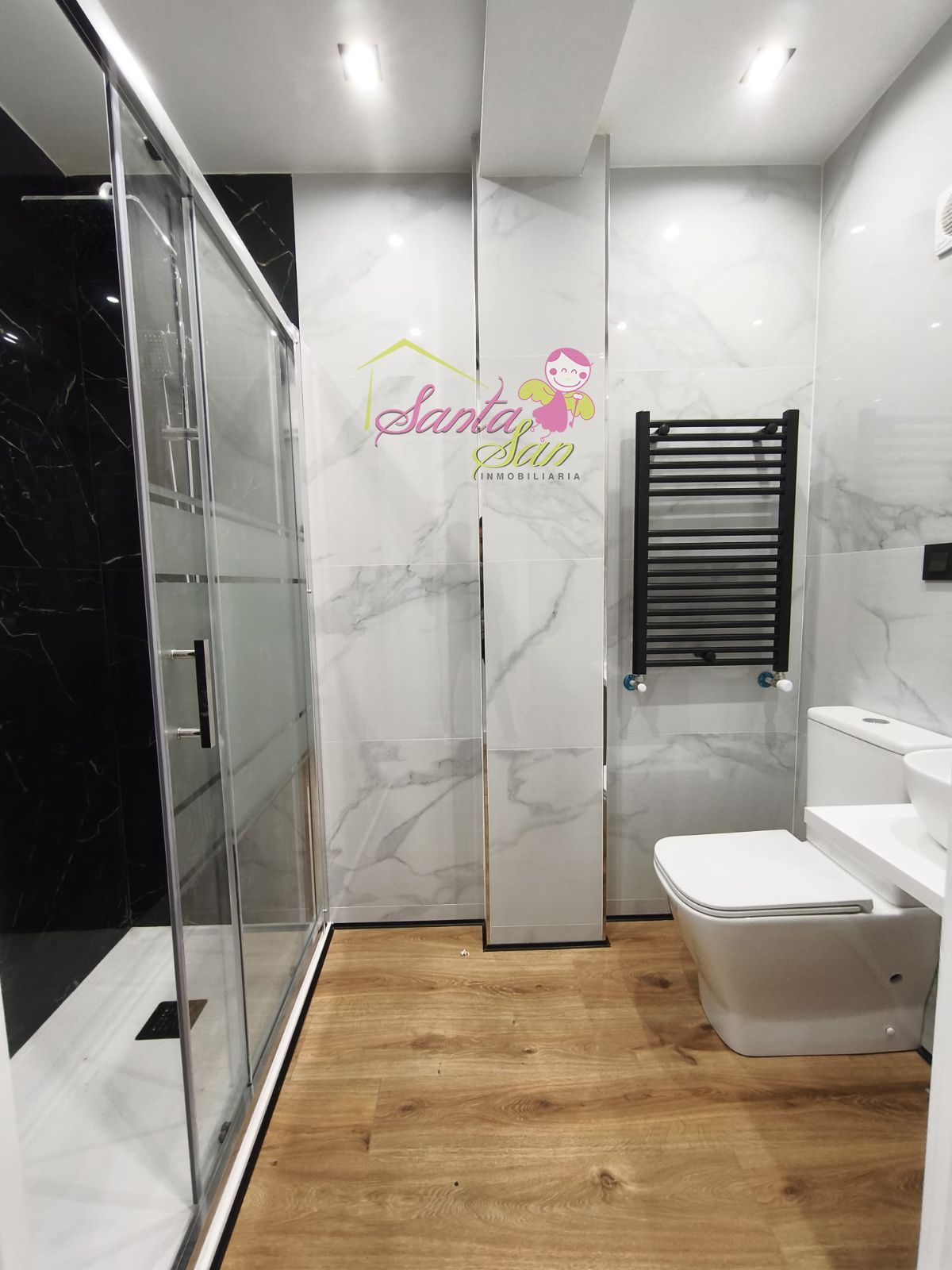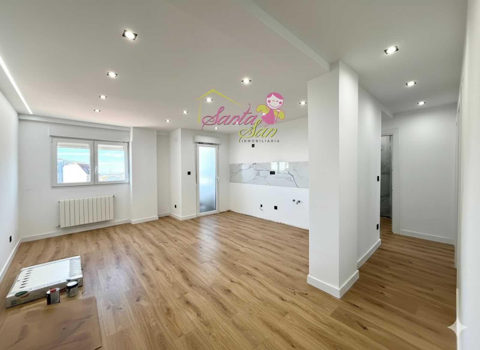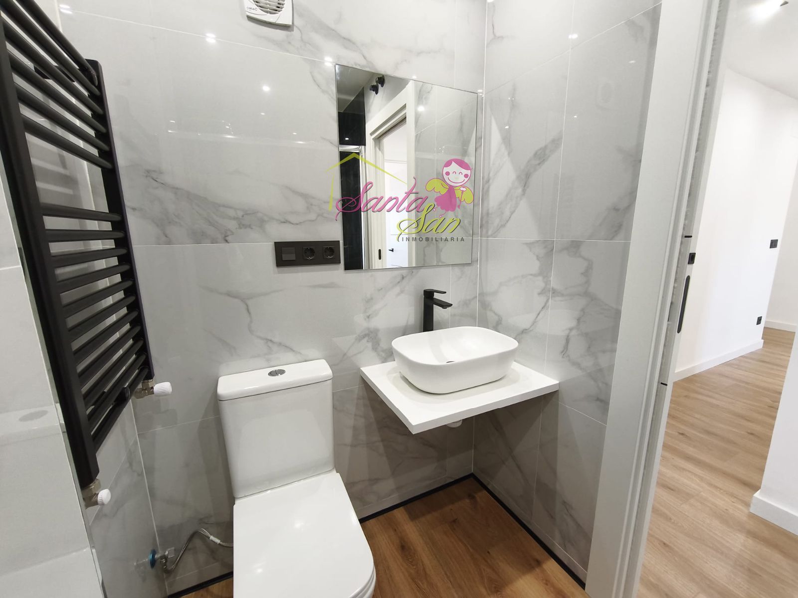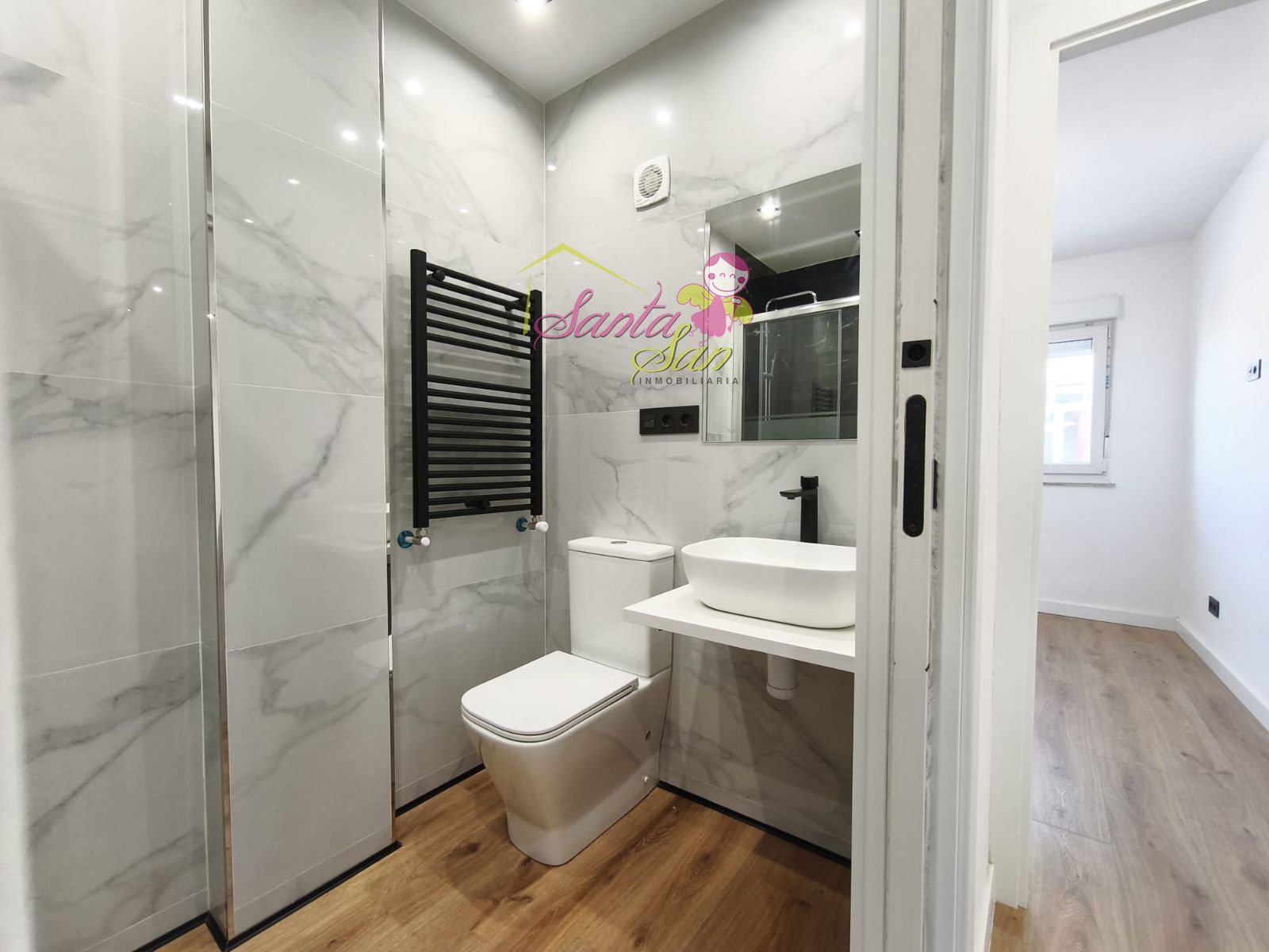 Acabados de Lujo: Ventanas de PVC de gama alta para un aislamiento superior, Electricidad (LED) y Fontanería totalmente nuevas, Pintura en liso, puertas lacadas en blanco con elegante perfil en negro mate. Suelos de tarima AC5 de máxima resistencia y cerámicas en porcelánico. Iluminación LED (halógenos negros antracita y tira de LED empotrada) para un ambiente moderno, Baño completo con sanitarios Roca o similar y grifería de alta calidad, Máxima seguridad con puerta blindada, Comodidad: Calefacción con servicios centrales (Gastos de comunidad: 130€).
