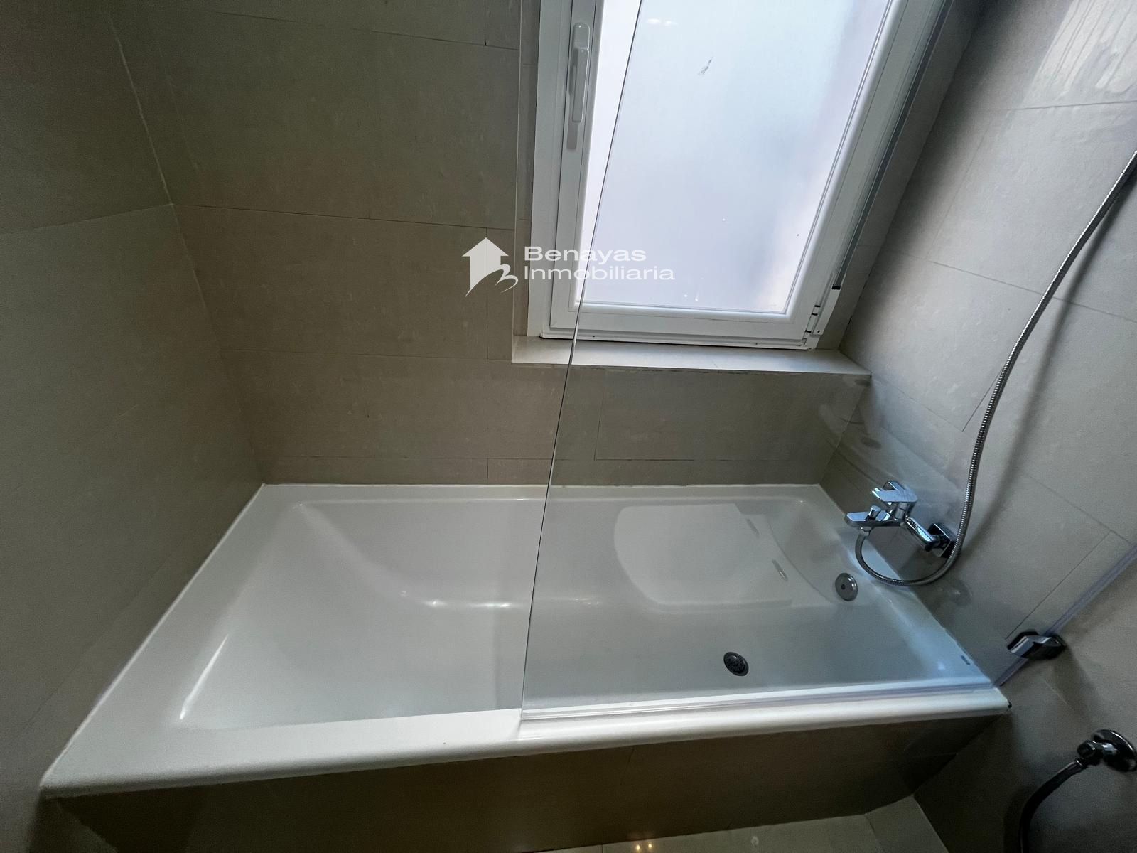 El amplio salón, equipado con dos ventanas que dan a la calle, es el lugar perfecto para relajarte o recibir a tus amigos. La cocina, completamente equipada con electrodomésticos modernos, cuenta con un acogedor espacio para disfrutar de comidas en familia. Además, el cuarto de baño incluye tanto bañera como plato de ducha, ofreciendo versatilidad y confort.