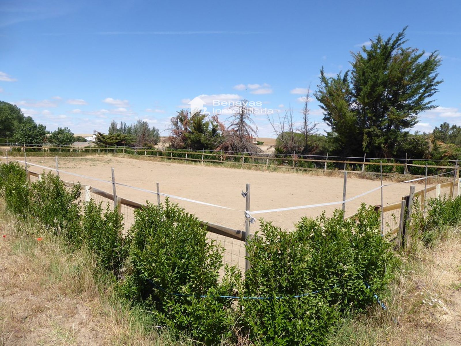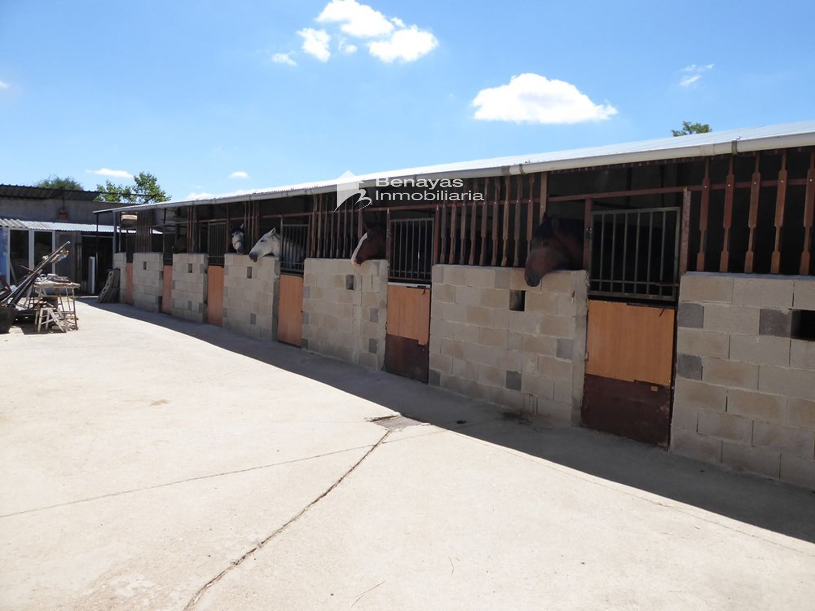 La propiedad también cuenta con una piscina cubierta, ideal para refrescarse en los días calurosos. Con una nave de 327 m² y 6 cuadras, este espacio es perfecto para los amantes de los caballos, con una zona de doma diseñada para su entrenamiento. El agua proviene de un sondeo, lo que garantiza un suministro constante.